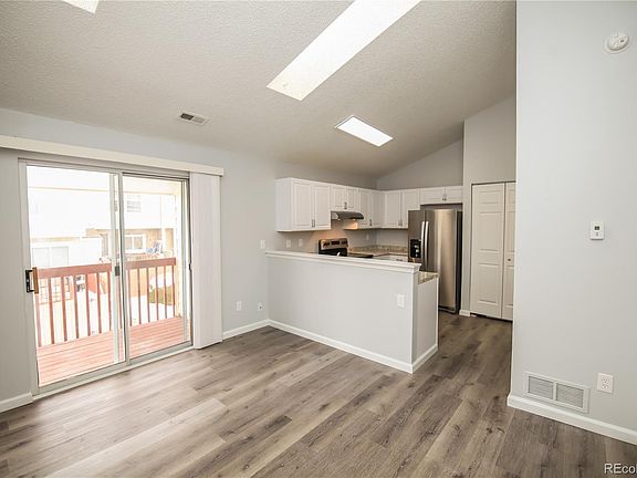 VACANT PROPERTY *Click on our Virtual Tour to walk-thru the home!* Fantastic 1 bedroom/1 bath penthouse condo in Quail Run! This updated/remodeled home is ready today. The living room greets you with soaring ceilings, skylights above and a nice balcony to enjoy the morning sunshine! The kitchen has been tastefully updated with all new stainless steel appliances and full bathroom adjacent. Newer wide plank laminate flooring throughout! Reserved parking space, and great HOA amenities including a community pool, clubhouse, tennis courts and more! Water and other amenities included as well. Great location with Buckley AFB nearby, easy access to I-225, near restaurants, schools, parks and more! Show today, don't miss out! *Click on our Virtual Tour to walk-thru the home!*