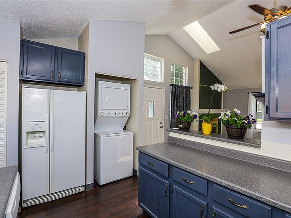 Must see! Awesome end unit adjacent to green belt. Property is updated with newer appliances and kitchen flooring. This one of a kind property features vaulted ceilinged, sky lights, stackable washer and dryer, gas log fireplace, storage off of the deck, large deck, patio/garden area and backs to a greenbelt. Property is being sold as-is condition. This property is definitely MOVE IN READY!