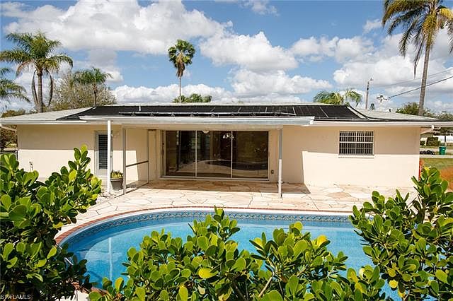 Now is your time to own a 2 bedroom, 2 bath pool home, 1 car garage with all assessments in and paid! Gorgeous tile flooring and carpet in the bedrooms. The custom kitchen has beautiful wood cabinets with soft close drawers and newer appliances! This home features sliders to the pool the entire length of the living/family room for that sunny SW Florida outdoor feeling for relaxation and enjoyment. Property also boasts a large, south facing solar heated pool, beautiful pool deck, lanai and a fenced yard without a pool cage so everything is open out back. Conveniently located in the heart of SE Cape Coral, close to Del Prado and quick access to both bridges to Fort Myers. This property could be your new home or it could be a great opportunity for an investor or part time resident. Ready to move in now! Call your agent for details and a private showing!