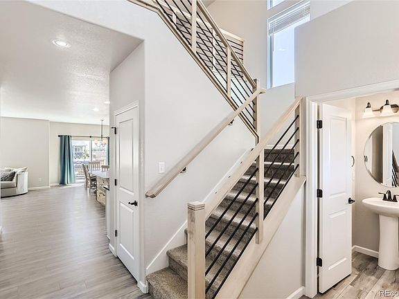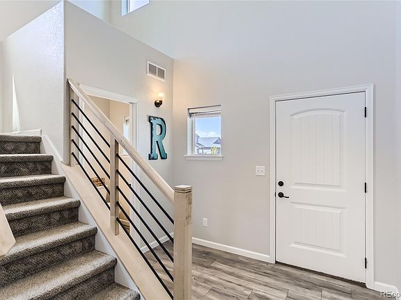 Stunning Colony Pointe home located on a coveted corner lot in a tranquil cul-de-sac! This large and modern residence boasts high-end finishes throughout, offering the perfect blend of luxury and comfort. An impressive two-story entryway welcomes you into the home and is flooded with natural light. The main floor features an open floor plan that seamlessly connects the kitchen, dining area, and living room, making it ideal for entertaining and daily living. The kitchen is a chef's delight, equipped with quartz countertops, a pantry for ample storage, a kitchen island with a convenient breakfast bar, and sleek white cabinetry. Cozy up in the living room next to the inviting gas fireplace, or easily access the patio from the sliding glass doors in the dining room for amazing indoor outdoor living. A shiplap wall leads to the garage adding a touch of character and style. Upstairs, you'll find a spacious loft area that offering flexibility for your needs. for The primary bedroom is a true retreat, featuring a private en-suite bath with a chic barn door entry, a large walk-in shower, a walk-in closet, and dual sinks with a vanity. Two additional bedrooms, a full bathroom, and convenient laundry room complete the upper level. The large unfinished basement provides ample storage space or room to grow! Outside, the fully-fenced backyard is complete with a spacious deck, perfect for dining al fresco or relaxing on warm evenings. Enjoy exploring the fantastic community spaces including a park, trails, playground, and pond!