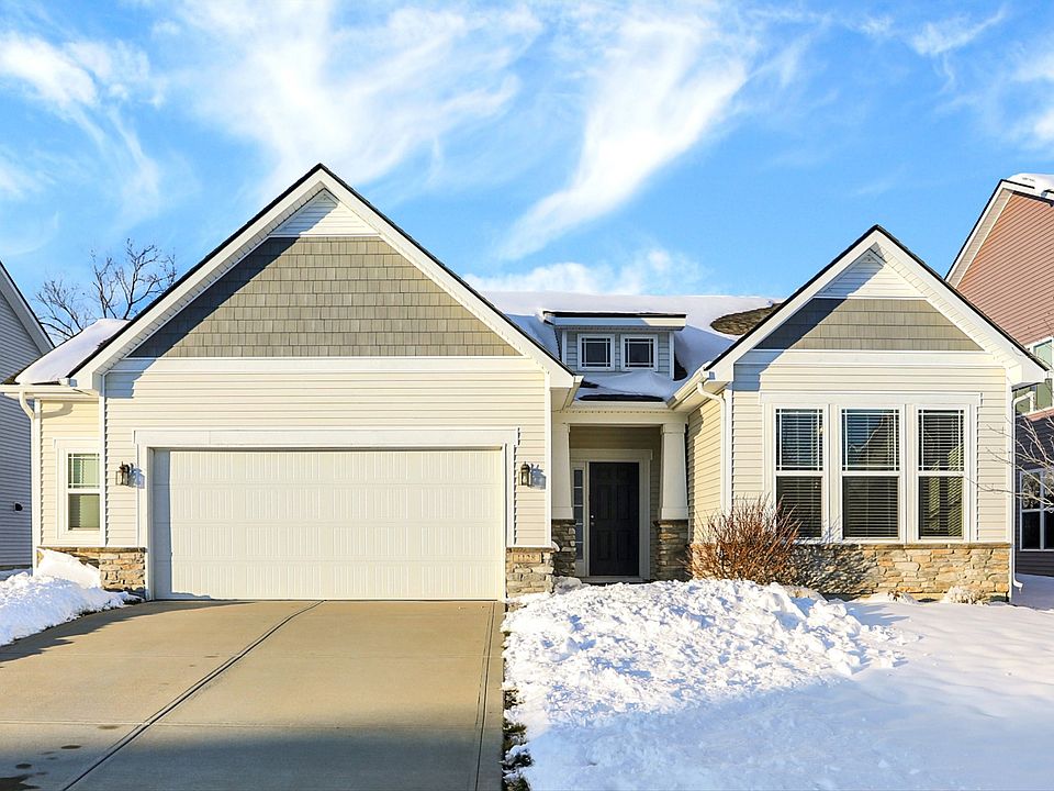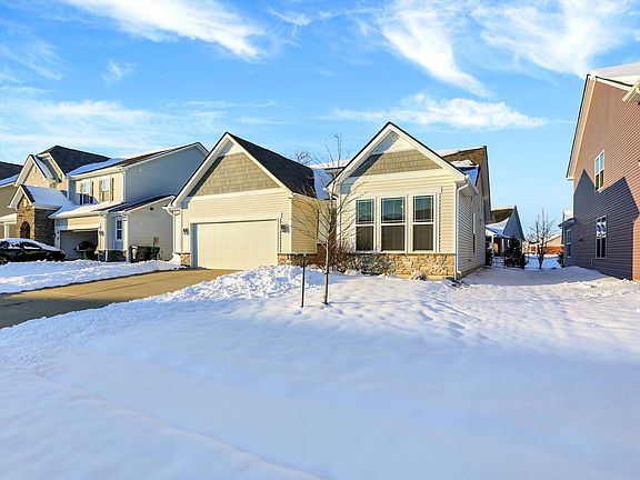 Welcome home to this modern open-concept 3 bed, 2 bath ranch built in 2019. This lovely home features a large great room with cathedral ceilings and a gas fireplace, dining area, and beautiful kitchen with stainless steel appliances, center island, granite countertops, dishwasher, Gas oven/range, white back splash and matching cabinets with crown molding. Primary bedroom en-suite has double vanity, spacious, full stand-up shower and walk-in closet. 2 car garage with 4-foot bump out upgrade for extra storage. Fully fenced in backyard with patio door leading out from the great room providing extra natural light. Located close to Greenwood parks, shops and restaurants.