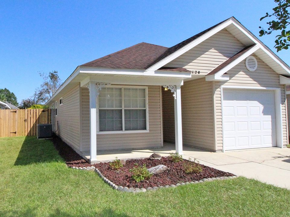 WIP Coming Available 10/24! This 2-bedroom, 2-bathroom cottage is located in the desirable Cottages at Milestone subdivision in North Pensacola, just off 9 Mile Rd. The home features a 1-car garage, a privacy-fenced backyard, and a spacious year-round Florida room perfect for relaxing or entertaining. Inside, the open living and dining area offers wood-look flooring, a ceiling fan, and French doors leading to the Florida room. The kitchen comes fully equipped with a refrigerator, electric stove, dishwasher, and microwave. The large carpeted primary bedroom includes a ceiling fan, walk-in closet with shelving, and a private ensuite bathroom with a tiled shower. The additional carpeted bedroom also features a ceiling fan and easy access to a full guest bath with a tub/shower combo. An indoor laundry room includes a washer and dryer (provided in as-is condition for tenant use), and lawn care is included in the rent. This home has a gas water heater and allows pets with owner approval and a $250 non-refundable pet fee per pet. Residents are required to maintain renter liability insurance, which can be added for $11.95/month, or may opt into the Resident Benefits Package (RBP) for $45/month, which includes renter liability insurance, HVAC air filter delivery, and on-demand pest control.