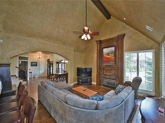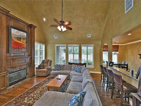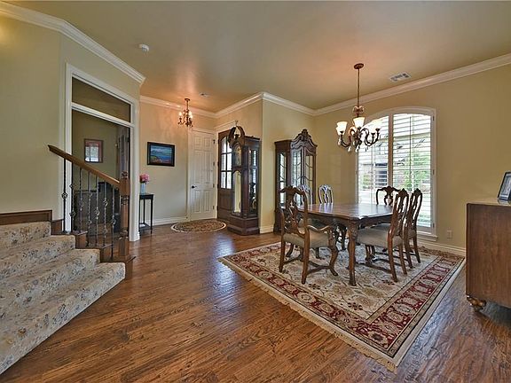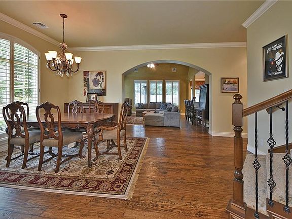 Former model home loaded with extras! Has hand scraped hard wood floors, beautiful woodwork, custom finishes on walls and cabinets, huge gourmet kitchen with large center island and pantry, fabulous master suite and guest bedroom downstairs, additional living area and guest bedroom upstairs. The carpeting has been replaced throughout the entire house within the last two years. Lots of storage and a storm shelter in the garage! Be sure to look at this one!