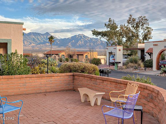 Discover the comfort & serenity of this stunning townhouse nestled in the heart of Green Valley, Arizona. Designed for those who appreciate the beauty of the desert landscape, this 2-bedroom, 2-bathroom home is the perfect oasis for relaxation & enjoyment. Step into the welcoming courtyard to be greeted by breathtaking mt views that promise to enchant you day after day. The front courtyard is the ideal spot to savor the unique Arizona weather, offering a tranquil setting to start your morning with a warm cup of coffee or unwind at sunset. Inside, you'll find a home with warmth & charm, a comfortable & cozy screened Arizona room that beckons friends & family to gather. The living space flows with an open great room & dining area creating an inviting atmosphere for hosting & entertaining. The kitchen is a chef's delight, boasting newer stainless appliances & plenty of cabinet space to store all your culinary essentials. Retreat to the primary suite, which offers access to the Arizona room, ensuring a private relaxing sanctuary. Outside, the private yard features a paved patio, perfect for outdoor dining or simply enjoying the serene surroundings. The convenience of a one-car garage with additional storage space, along with a laundry room equipped with a newer washer and dryer, adds to the thoughtful design of this home. Residents will enjoy the abundance of amenities at their fingertips, including Green Valley Recreation, coffee shops, walking trails, golf, and biking paths. Embrace a lifestyle of ease plus leisure in this exclusive community, where every day feels like a vacation.