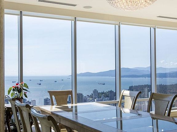 Luxurious 2400+ sqft VIEW home in the world renowned Shangri-La Vancouver. SPECTACULAR East/South/West views spanning from English Bay, over Downtown Vancouver, sweeping over to the East. From sunrise to sunset, you will LOVE THIS VIEW! This executive home has over 11' ceiling height, automatic blinds, a/c, plus large floor to ceiling windows. High end updates include extensive use of onyx marble flooring and feature marble pillars. Private, unobstructed outlook from all spacious principal rooms. This prestigious building has a welcoming lobby with 24 hour concierge, gym/spa, outdoor pool, and other hotel services by request. Excellent location, steps to high end boutique shopping, fine dining, Coal Harbour, Stanley Park, and Robson Street. 2 side by side parking, 2 storage