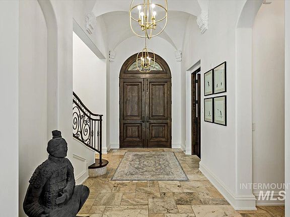 Masterfully crafted home in coveted Two Rivers—Eagle's premier gated community. Peace and possibility meet in a private retreat that’s also a fun paradise. Marvelously appointed, recently updated, 7,700+ sf. of Napa Valley inspired luxury. Ample entertaining options—vast great room with palatial fireplace; formal dining room; theater, game/billiard room & gym. Office w/fireplace. Soaring views from owners’ suite and great room of 2 private waterfalls and private pond. Outdoor amenities include saltwater infinity pool, grotto-like spa, kitchen, lounge area, changing chamber with bath. Lush, ¾ acre-site, ideally complements the expansive home. Paver-stone drive, porte-cochere, and private courtyard lend Old World charm to the entry. The Pointe affords extra seclusion within Two Rivers where 254-acres of mature trees, flowering plants, 17 lakes, and 41 waterfalls add to the splendid ambience. Winding paths lead to community park, pool, clubhouse, and the Boise River Greenbelt. Minutes from Eagle and Boise.