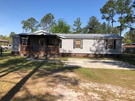 Double wide mobile home with permanent foundation on almost 2 acres. Upon driving to this property you will notice a concrete parking pad and walk way leading to the covered front porch that is perfect for enjoying the quiet neighborhood. The home features a spacious living room open to the dining room and kitchen. The kitchen is equipped with island and lots of cabinet and counter space and opens to the family room with wood burning fp. The home is a split bedroom; the master bedroom has a walk in closet and en suite with single vanity, soaking tub and separate shower. The property offers plenty of space outside to grow a garden or expand the yard. Within minutes to the high school and just a short drive to Darien and I-95.