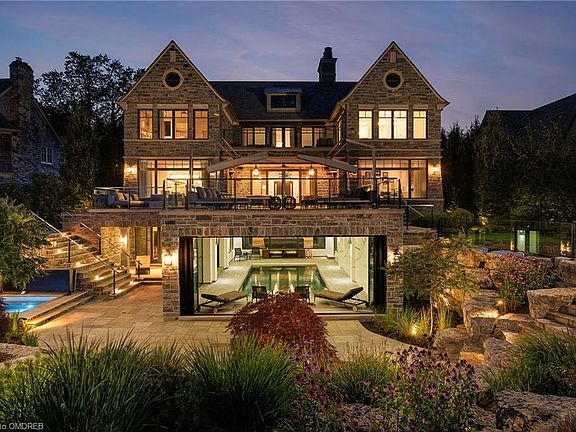 Welcome to 1128 Westdale Rd. Built by Chatsworth Fine Homes, this property has brilliant views of Lake Ontario and is situated on an over half acre property. The home combines sophisticated luxury with the highest level of construction to create one of Oakville's best lakefront homes. Upon entering the gates, the meandering tree lined driveway leads to the triple garages, completely outfitted by Garage Living. Exterior of this home is even more stunning at night with the ambient landscape lighting and well-lit all granite stone exterior. Main floor is beautifully designed with exquisite detail around every corner. Near 11-ft ceilings provide an open-airy feeling throughout. No estate home would be complete without a grand foyer and this home has that with direct views out to the water. Kitchen/great room combination is designed for large scale entertaining with it being open concept to the dining room. Oversized sliding doors completely open the great room to the rear covered porch with retractable screen and expansive patio. Views from this section of the lake are arguably the best in Oakville. Incredibly deep lot jets out the furthest into the lake, resulting in greater than 180-degree panoramic lake views, including the Toronto skyline. Upper hallway features a beautiful, vaulted ceiling, skylights and show stopping light fixture. Primary bedroom is located across the rear of the home taking in the best views of the water. Lower level is completely loaded with a secured wine cellar, luxurious wet bar, an indoor hockey rink, just to name some of the features. One of the more unique features of the home is the impressive indoor swimming pool. With accordion folding doors on two sides, this space effortlessly transforms into indoor/outdoor space with easy access to the outdoor gunite hot tub. This home is the true embodiment of a proper estate home located only a few short blocks from Oakville's quaint downtown core. The ultimate Oakville lakefront experience.