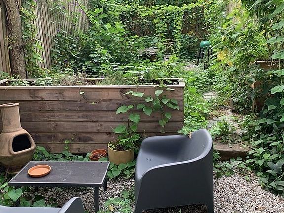 Super Rare and Huge 1 Bedroom Railroad apartment near Maria Hernandez Park featuring hardwood floors, high ceilings, separate kitchen and living rooms, spacious bedroom, sunny windows throughout, bonus room plus backyard access!