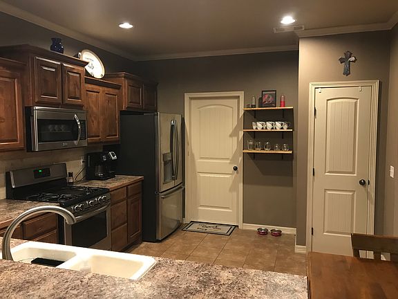 Move-in ready home on .5 acre lot. Lots of room for dogs & kids to play! Enjoy the large, fenced community area with a pond! The corner lot allows for plenty of parking for those backyard parties! Features include: split floor plan, pantry, stainless steel appliances, open floor plan, tornado shelter in spacious 2 car garage, huge master closet, & pergola on patio in the back yard! This home is available for 100% financing. Seller will pay up to $4500 in closing costs - a perfect starter home!