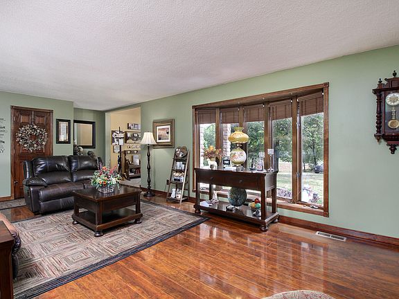 Absolutely fantastic property. From the moment you pull in the drive you'll be impressed with the curb appeal. Huge oak trees park like setting. Fantastic front porch entry. All brick and stone accents makes this property pop. The main floor features a nice size living room with a beautiful bay window. Kitchen with lots of cabinets and a formal dining room. The door of the dining room leads to an oversized two car garage with lots of room. Upstairs has a large master bedroom with a recently remodeled bath. Granite countertops and a tile shower makes this room fantastic. You also have your own Door that leads to a beautiful deck. Sip your morning coffee while looking at all of the wildlife. Lots of deer and turkey. There are also two more bedrooms and a bathroom. The second level down features a wood burning fireplace with an insert. And it is a wonderful second living area. Great for entertaining There is also a large laundry room with a stool. And plumbed for a sink , and a possible bath tub. The fourth level is an unfinished basement. But it's quite large, clean and dry. Great place for storage and Shelter from storms. All this on 5 acres. Don't forget the fantastic above ground pool with an amazing deck. Also an awesome storage shed 30X 40 with concrete floors and electric and it is insulated. Also a nice 20X 20 shop This is a must see property. Easy access to I 44. Award-winning Mt.Vernon schools.
