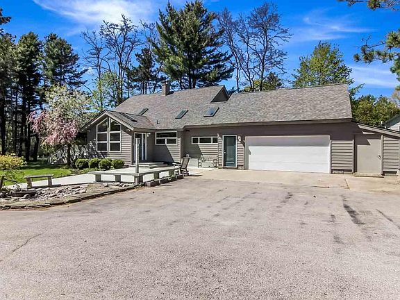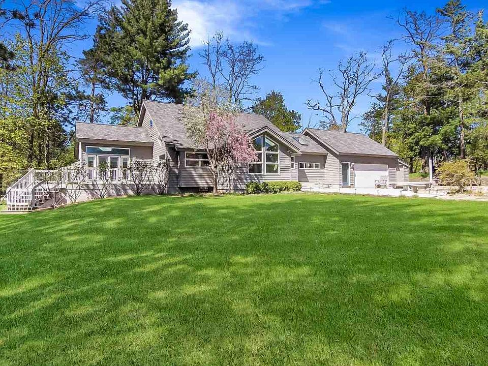 Delightful home with a contemporary flair sits on 3+ acres with 162' on the shimmering waters of South Bar Lake. West facing views capture amazing sunsets. Enter the 2,779 sq. ft. house designed for casual living from the generous great room with sleek gas fireplace, to the light filled family room/studio with handsome wood burning fireplace and spacious outdoor decks. 3 bedrms., 2 baths, unfinished basement, generator, attached 2 car garage, plus loads of storage space are ideal for a growing family. An extra bonus - an adorable 1 bedroom & bath cottage is included too! Private location, yet so close to Empire's public Lake MI beach, shops & restaurants, hiking trails & Glen Lake Public Library. Enjoy this special place seasonally or become a member of the greater Empire community all year!