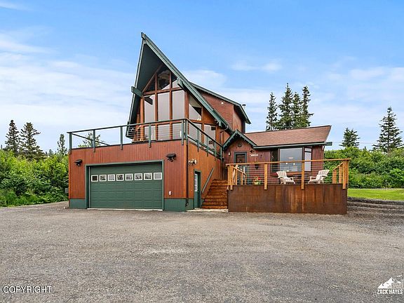 Nestled in the Chugach Mountains with beautiful floor to ceiling windows flooding the home with light and allowing for breathtaking views of the inlet, mountains, sleeping lady and the city lights. The updated kitchen with custom cabinets, granite countertops, stainless steel appliances and dining area is situated perfectly off the living room. Upstairs you will find the primary bedroom with a private spa bath and walk-in closet; a serene retreat to enjoy. The home features a gas fireplace, updated bathrooms, two additional bedrooms, and ample storage space. The over 1200 sq ft. 4 car garage is perfect for all your Alaska needs with built in workbenches and shelving. Outside enjoy the expansive upper deck offering multiple seating areas and views from every corner. The lower patio is ideal for relaxing around the fire pit. Plenty of space for boat or RV parking with electrical hookups. An abundance of mature trees afford privacy and serenity. This home is sure to meet your needs inside and out. Welcome home to 11281 Doggie Ave.