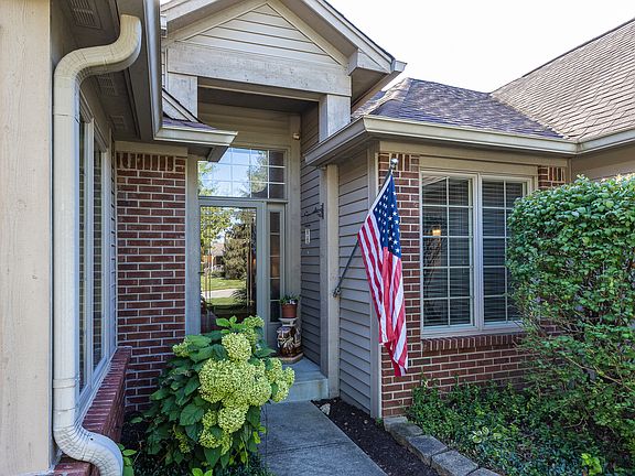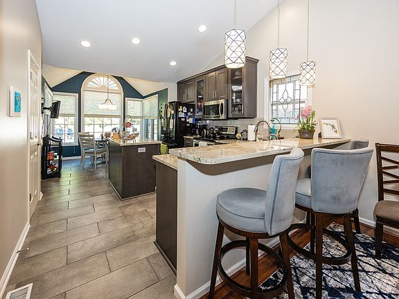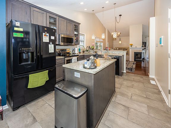 This stunning ranch home is perfectly situated on a serene cul-de-sac, boasting a beautifully landscaped lot, with an irrigation system, and a finished basement. The property features several updates and upgrades, including a newly remodeled kitchen and guest bathroom, along with a newer microwave, oven, dishwasher, new gutter guards, and some fresh carpet. The welcoming great room is highlighted by a two-sided fireplace and offers picturesque views of the backyard. The kitchen is equipped with a planning desk, pantry, and a counter island, and the adjacent breakfast nook provides a cozy spot for meals. The spacious primary suite is a retreat of its own, complete with dual sinks, a bath tub, beautifully tiled shower, and two walk-in closets. The finished basement adds significant value, featuring a media room with a wet bar and a separate workout/bonus room.