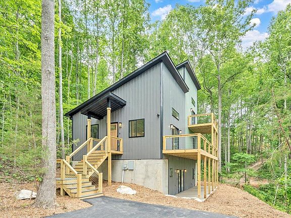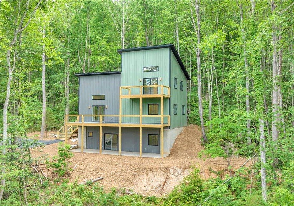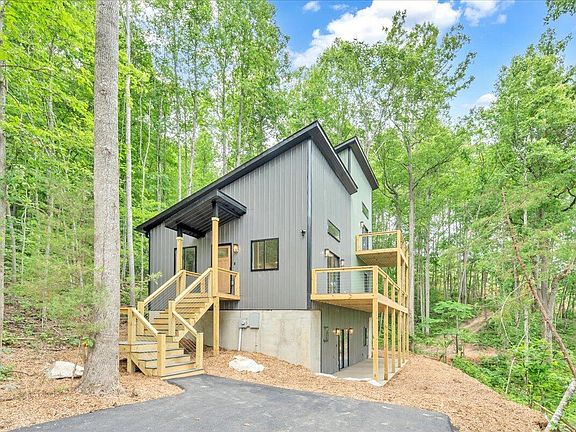 Beautiful new construction! A modern home with design inspiration from a classic treehouse. 3 bedroom, 3 full baths nestled in the middle of over 6 acres of mature hardwood with breathtaking views of nearby Tinker Cliffs. Convenient location to multiple AT trailheads, and easy access to Salem or Daleville. Granite throughout the entire home, as well as a fully finished basement with a bar area for entertaining. Fiber internet with up to Gig speeds available. Decks on every level including a private deck off the master suite make this home a perfect location for nature lovers.