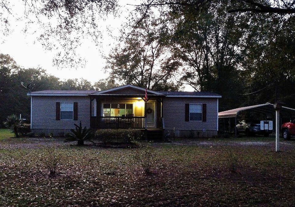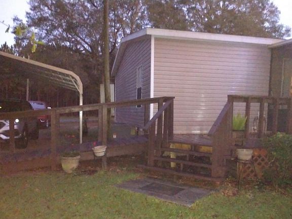 Very well kept doublewide mobile home on 1 acre with front porch entrance; 3 bedroom, 2 bath, new hardwood floors, includes shed with extra storage in the backyard. Screened back porch with handicapped access and open deck area. Nice pergola with swing in back yard. Landscaped.