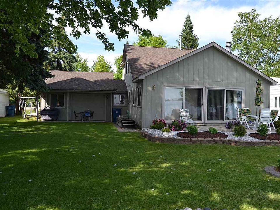 Lake front home on north shore, this year around home offers over 1500 square feet, large open living room with vaulted ceilings, spacious kitchen with custom cabinets and fantastic views. Includes attached garage and well landscaped yard. 8x13 den could be used as 3rd bedroom.