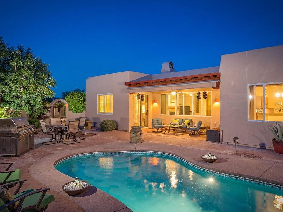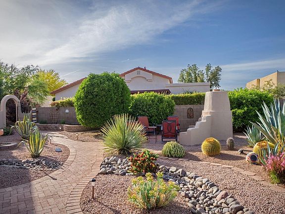 Don't miss out on this 3 bedroom + den, 2 bath home loaded with extras! This special property in desirable Monterra Hills features an oversize lot with a pool & enchanting outdoor spaces. Large side yard with separate gate offers a fireplace gathering area with beautiful Catalina Mountain views and plenty of space to garden. Inside, the bright open living space has lots of architectural charm- viga poles, hardwood floors & a gas fireplace. A cheery kitchen boasts a pantry, glass backsplash, solid surface counters & stainless steel appliances including a double oven range. Large master suite has access to patio, walk in closet & bath complete with dual sinks, walk in shower & soaking tub. Two guest rooms at the front of the home feature mountain views & are serviced by a full guest bath.