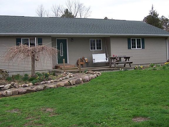 SPACIOUS COUNTRY RANCH MASTERFULLY CONSTRUCTED WITH SUPERIOR WALLS. OPEN FLOOR PLAN. 30 X 64 FULL BASEMENT. NEW ROOF. GREAT SETBACK WITH PLENTY OF PRIVACY. 2009 CONSTRUCTED 24 X 62 HEATED AND INSULATED OUTBUILDING. PUBLIC WATER.