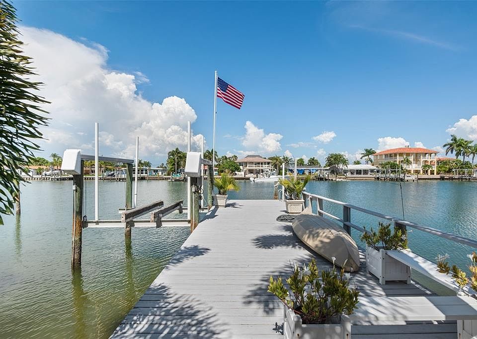 WATERFRONT, LOCATION, COMPLETELY RENOVATED! What else is there to say? Actually, quite a bit! Own this home and you own a piece of Old Florida beach- style living at it’s finest! Located on the very desirable Isle of Palms, this mid- century home features 3 br, 2 ba, Living Rm, Dining and Family Rm with a motor court 2 car garage. This updated home is perfect for the buyer seeking the best of waterfront living in a classic Florida design with an equal measure of functionality. Upon arrival you are greeted by a quaint gated courtyard entry with travertine and double-leaded glass doors that says, “Welcome Home!” Once inside you will be struck by the attention to detail and the awesome intracoastal waterfront view thru the glass door walled Family Room. Inside you will find dramatic details such as multi-level high ceilings with crown mould, over-sized tile thru out the main living areas and an open concept. This sun-filled home is open and flowing with an abundance of windows and sliding glass doors dissolving the lines between indoors and out, you’ll be proud to call this home. The chef’s kitchen is the heart of the home offering quartz tops, breakfast bar, travertine pencil-tile backsplash, under-cabinet lighting and easy to clean white cabinets. Light and airy is the lovely Master Suite that offers a spectacular view of the water and outdoor patio. This en suite has been completely renovated with a gorgeous walk-in shower. Two more generous sized bedrooms share a pretty, renovated full bath. BUT…the WOW factor is the outdoor entertaining area with stamped concrete patio, trellis, and a full 12’ wide two-tiered dock that includes a 10,000 lb lift, electric, water and fish cleaning station. From here you are a mere 15 min boat ride to the Gulf of Mexico! Sit back, relax and enjoy the Florida Lifestyle…DON’T YOU DESERVE THIS?