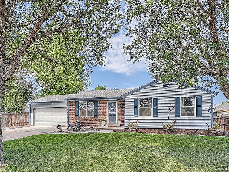 Discover the charm of this well maintained ranch-style home in woodglen neighborhood of Thornton. Step inside to find hardwood floors extending from the entry through the living room. The kitchen boast stainless steel appliances, Refrigerator, Stove Dishwasher and Microwave and spice rack on the backsplash. The large living room has ample space for a large TV and has a electric fireplace. Enjoy the convenience of three bedrooms on the main level, including a primary bedroom featuring a ¼ bath. Home does have a swamp cooler, whole house fan and
