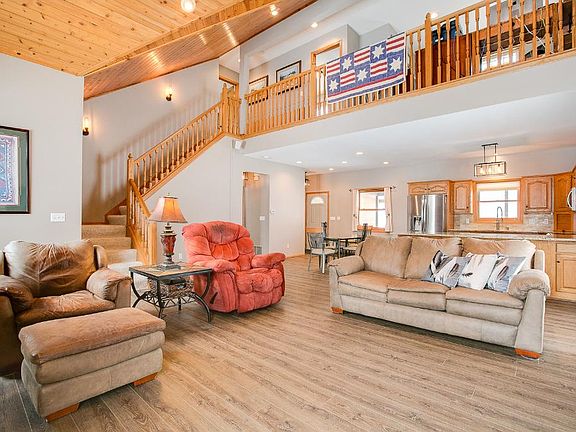 One of a kind Location, One of a Kind Home Open floor plan in this quality built home. Main Floor Master Suite. Stunning great room with stone fireplace and loft that overlooks the large windows towards the lake. Beautiful large level two acre lot on Chisago Lake.Finished lower level in beautiful hard woods plus bar area and opportunity to add another fireplace. Enjoy your front porch or relax on your back deck... The perfect place to call Home.