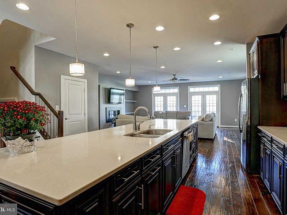 Beautiful executive brick front end unit townhome in Maple Lawn! Just a short walk to shopping and restaurants! 4 bedrooms 3/1 bath home. First floor den/4th bedroom with walk in closets and access to full bathroom. LARGE recreation room on main level. Gourmet kitchen w/ stainless steel appliances & HUGE oversized island. Open family room off kitchen with gas (remote control) fireplace and mounted TV that conveys. French doors in family room lead to the trex deck w/ vinyl railings. There is even a curved stairway that leads to the stone patio! Master suite with hardwood floors, TWO walk in closets, and luxury master bath. Two car detached garage PLUS on street parking in front of home. Large brick patio with stacked stone fireplace. Estate sale that is almost empty. Many chattels available for buyer!