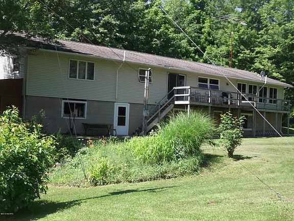 Roomy walk-out ranch. Plenty of deer and wild turkeys on this 9.76 acre wooded lot in Pennfield.Large attached garage with additional 1200 SF modern outbuilding with electric. Concrete Drive