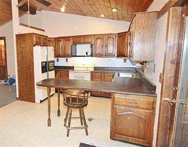 1 level living. Notty Pine Cathedral Ceilings in LR, DR, & Living Room. Spacious Living room w/focal on Brick Wood burning Fireplace. "C" Shaped Kitchen w/ample cabinetry, island, & fully equipped. Finished lower level, w/oversized laundry rm and another room for storage.