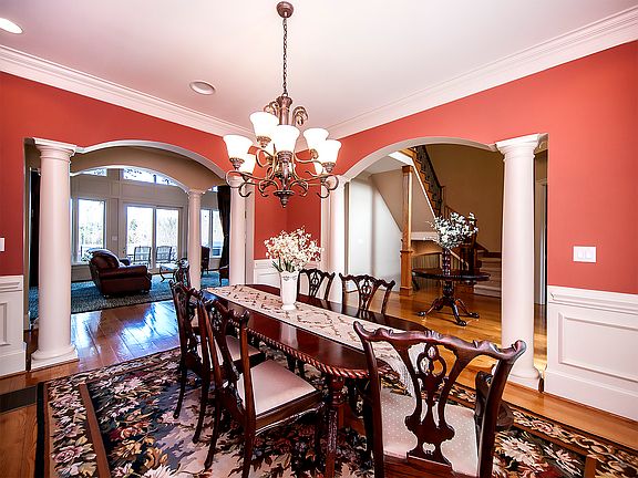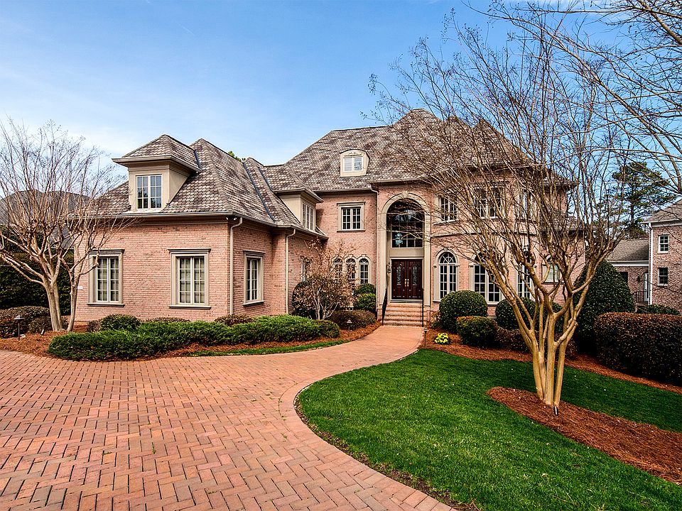 Beautiful brick basement home on the golf course, overlooking #18 green and fairway. Gorgeous dark stained hardwoods, Viking-Wolf-Bosch appliances, heated floors in KT & master bath, circular driveway,screened porch, cedar closet, generous rooms throughout and abundant storage. Nice office with elegant detail & beautiful master suite on main w/frameless shower. Updated HVAC and recent roof. Fantastic full finished basement with multiple recreation areas offering great set up for entertaining.