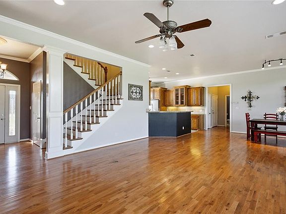 MOTIVATED SELLERS! Gorgeous home on 1+ acres! Beautiful wood floors in living areas and master bedroom which features a rustic barn door that leads to a completely remodeled bathroom retreat featuring dual vanities, claw foot tub, and separate shower. Kitchen has custom wood cabinets and stainless steel appliances including refrigerator and is open to spacious dining and living area with corner fireplace. Split floor plan with bedrooms 2 and 3 downstairs sharing a Jack & Jill bath. Upstairs features an over-sized game room, office area, 4th bedroom, and half bath. Outside you can enjoy the covered front porch in this quiet country setting. Insulated 40x30 shop with electric, 220 service, and 50 amp for RV.