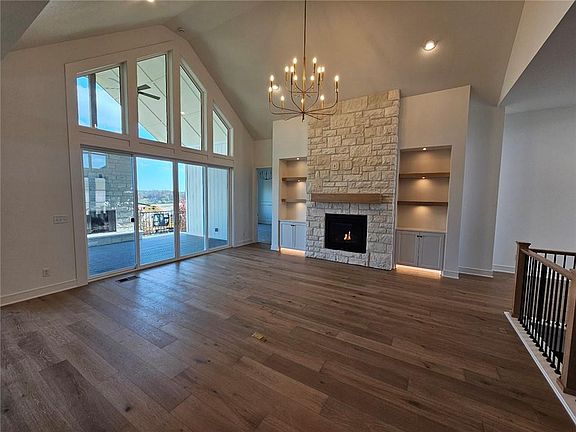 JFE Construction brings their fabulous Bayberry Rev. 1.5 sty plan to Johnson Counties newest maintenance provided community of Prairie Canyon! This beauty sits on a walkout lot with SE rear exposure backing to greenspace w/dramatic long vistas! Cathedral vaulted ceilings in the entry, Great rm & thru to the covered deck with FP. Open concept plan with Great rm., kitchen & dining all open to each other, large island & spacious pantry. Two bdrms & 2 baths on the main floor, 2 bdrms. & 1 bath down with plenty of Family & recreation space which includes a fantastic wet bar!
