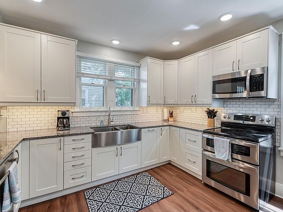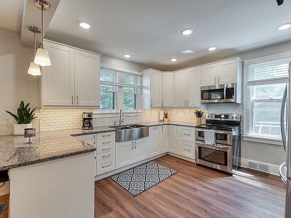 Wonderful north Fargo character home close to downtown! Newly remodeled kitchen with granite countertops, tile backsplash, stainless steel appliances, and a walk-in pantry. The large kitchen is bright and open to the large dining room. Gorgeous original refinished maple hardwood floors throughout. The wood-burning fireplace in the main living room is perfect to stay cozy on those cool nights. The large master bedroom upstairs features two spacious closets as well as ample built-in shelves and drawers. 2 additional bedrooms are on the second floor along with a full bathroom. Large 22x28 double detached garage with alley access and extra parking spaces. Central air conditioning. Recently painted stucco exterior. The enclosed front porch is perfect for a charming, neighborly setting,