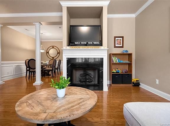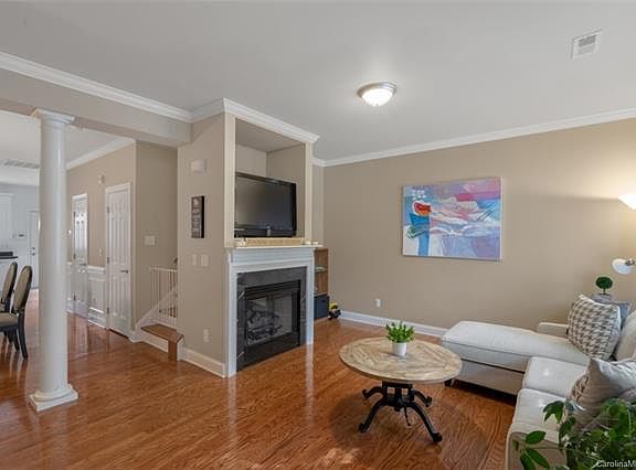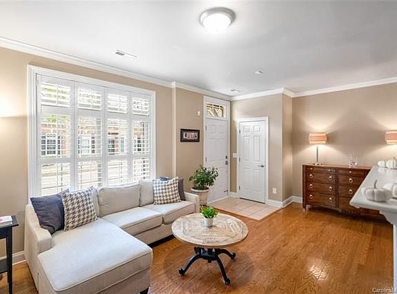 Beautiful townhome within walking distance to shops including Target. Master bathroom recently renovated to a Spa retreat including soaking tub and huge glass shower. Enjoy evenings on the private patio. Detached two car garage, dining room and eat in breakfast, and split bedroom floor plan. Harwood flooring throughout home. Community features patio area with wood burning fireplace. Enjoy a shorter commute with easy access to I-77
