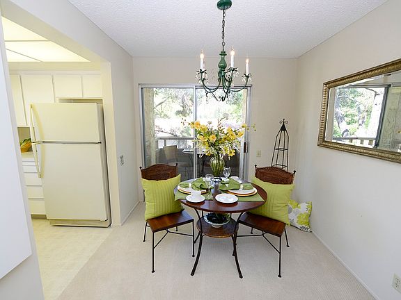 Charming Villa Seville with new paint and carpet throughout. Wonderful tree and hillside views from 3 patios. Built-in bookshelves/desk unit in bedroom with Washer/Dryer in home. Light and bright and ready for you to call home.