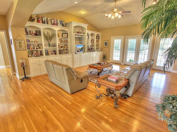 Beautiful, elevated home on almost 4 acres far enough from the city to enjoy peaceful living but still close enough to shopping, restaurants, the Lake, Tail Race Canal and more!! This home is on a quiet street surrounded by other custom built homes with lots of land! From your front porch, enjoy the beautiful blue skies and open fields...from the back porch you will love the elevated view looking down onto the rear acreage with peaceful views of woods and wildlife!! The main level of the home features gleaming hardwood floors, wrought iron hand railings, recessed lighting, custom built in cabinets and bookshelves, smooth vaulted ceilings, granite countertops, large kitchen pantry, tile backsplash, and much more!! The floor plan is very functional with a formal dining room, office/4th bedroom, HUGE family room with amazing views of the rear acreage, open kitchen with an additional dining room and breakfast bar, and the master bedroom located on the opposite side of the home from the additional 2 bedrooms. The 2nd and 3rd bedrooms each have their own adjacent private bathroom. The master bedroom also includes beautiful hardwood floors with a private entrance out to the rear porch, HIS and HER walk-in closets, jetted garden tub, enclosed walk-in shower, and dual sinks!! The ground level of the home includes some additional living space as well as great possibilities for the future!! The laundry room(approx. 400 sq ft included in sq footage), complete with its own laundry chute from the main level, is large enough to be used as just about anything...and is tied into the heat and air system. The current heating and air system(3 years old) in the home was intentionally installed to include a possible, partial or full, garage conversion in the future to create more living space. There is also a trunk line already installed that vents could be installed in at a later date. There is an additional half bathroom located in the corner of the garage for convenience. Plenty of parking available including up to 4 cars in the main garage and an additional 3 cars in the carport. Quiet country living at it's best!!! No homeowners association!!!!