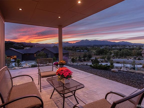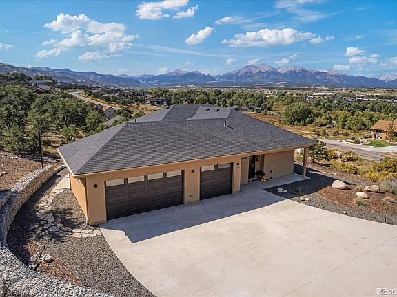 Relax on the west facing patio of this tidy ranch style home and take in the stunning views of the Collegiate Peaks, Little Arkansas River, and the entire Arkansas River Valley. The sunsets from this property are unbelievable! 3 large bedrooms and 3 full bathrooms give everyone excellent privacy. The open living and kitchen area is positioned perfectly to maximize the views, with multiple sliding glass doors for abundant natural light and vistas in all directions. Step out from the living area onto the covered patio or retreat to the sheltered south facing patio on the back side of the home, where a gas fired fire pit will warm you up on chilly evenings. The kitchen space is built in a contemporary European style with abundant cabinets and counter space along one side of the room while still taking a back seat to the beautiful living area and allowing plenty of space for a dining setup. You could easily add a kitchen island here to increase prep space and enclose the kitchen area more. This house sports more storage than most of its size with a 3 car attached garage and a tidy storage shed in the backyard. Low maintenance is the name of the game on the exterior with tasteful xeriscaping that explodes with color in late summer, a stucco exterior, and well kept sidewalks and stone walls around the home. Homes in this size and budget range are rare in Little River Ranch – don’t let this gem get away!