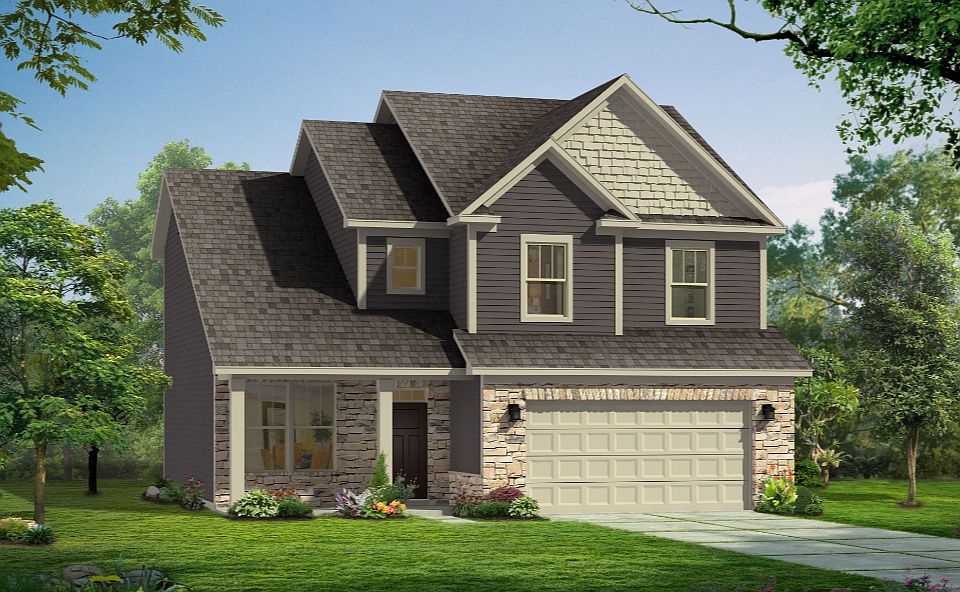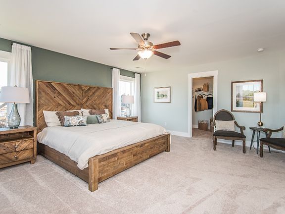 This plan offers an attached 2-car garage. The open concept kitchen opens to a breakfast area, flex, and family room. The primary suite features an expansive walk-in closet, dual vanity, and oversized shower.