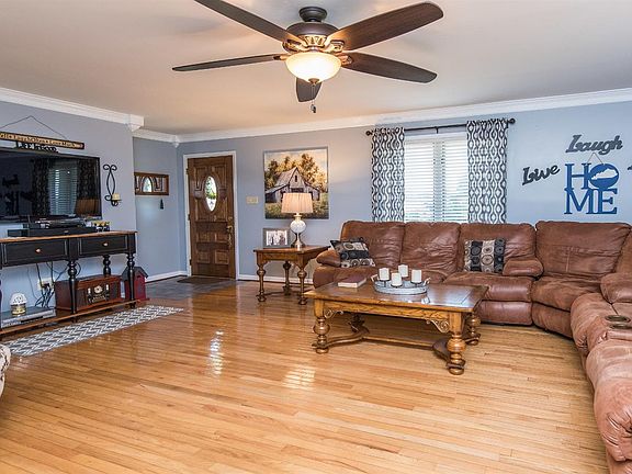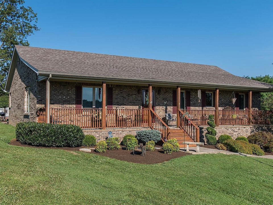 3 bedroom 2bath all brick ranch on unfinished basement situated on 5 acres minutes to US27. This one owner home has been loved & cared for with many updates and extras!Gleaming hardwood flooring greets you at the entry.Large family room complete w/ hardwood & ventless gas fireplace. Extra large custom kitchen complete with hickory cabinetry,updated stainless appliances,beautiful tiled flooring and great counter top space!Walk in laundry room with additional cabinetry & pantry closet.Master bedroom has walk in closet, full bathroom with separate shower and jetted tub, updated tiled flooring and hardwood flooring. Additional bedrooms have great closet space. Sun room at rear has amazing views and great windows and opens to decking with pool! Updated liner and very well maintained. Unfinished basement can be finished for additional living space plus an over-sized 2 car garage. Covered front porch, well maintained exterior and landscaping. Newly blacktop driveway.