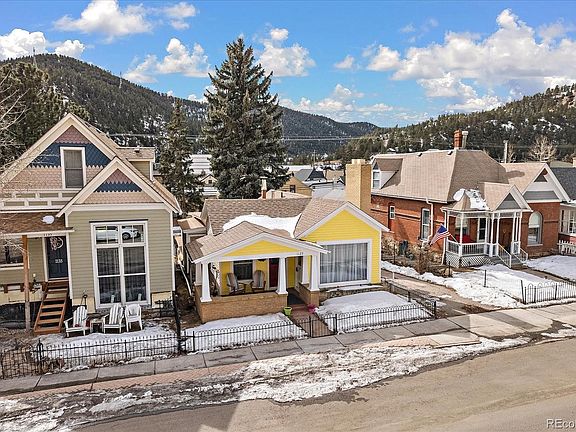 This historic ranch-style home nestled in the charming town of Idaho Springs offers an exceptional blend of charm, comfort, and convenience. As you step inside, you are greeted by an inviting living room, highlighted by a cozy fireplace and a large window that floods the space with natural light, offering views of the scenic surroundings. The home boasts an open-concept layout, seamlessly connecting the kitchen, living room, and dining area, creating an ideal environment for both relaxing and entertaining. The finished walkout basement presents versatile living options; it can serve as a private bedroom suite complete with a bathroom, or as an additional family room, perfect for movie nights. One of the home's standout features is its proximity to downtown Idaho Springs, allowing residents to enjoy a short walk to local shops, restaurants, recreational center, elementary schools and other attractions, blending the tranquility of suburban living with the convenience of city life. Outside, the property boasts ample private parking space, capable of accommodating an RV and/or boat, highlighting the home's suitability for outdoor enthusiasts. Two additional parking spaces are available from the alley, next to the garage with additional parking permits available for parking on the street side. Additionally, a detached garage offers extra storage space or can be utilized as a workshop. This home not only offers a peaceful and comfortable living space but also provides a unique opportunity to own a piece of Idaho Springs' history, all while enjoying the modern amenities and conveniences desired in a home. Whether you're looking for a permanent home, a weekend getaway, or a place to retire, this property promises to be a cherished space for years to come.