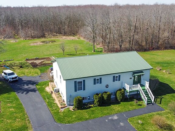 Welcome to the Castle Heights Subdivision and the wonderful Fingerlakes region. Country living at its best. This property offers 3 large bedrooms, 2.5 bathrooms. Natural gas and public water. The kitchen, dining room and living room offers an open floor plan for easy entertaining. The wonderful dry basement is pretty much finished with ground level walkout with many possibilities. Step out to your lovely backyard and not to mention an 1889 built barn with water, electric, horse stalls and chicken coop. {Up to eight horses approved} This home sits proudly on 36.5 acres for anyone who loves nature and hunting. Minutes from Seneca Lake, shopping, and the wine trails. Deed restrictions attached. Please allow 24 hours for response on all offers.