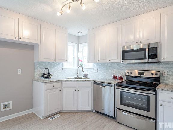 GORGEOUS home in the HEART of Garner with Rocking Chair Porch! Features a bright open floor plan and upgrades galore including a custom designer kitchen with stainless steel appliance, tile back splash and granite counter tops. Updated master bath with walk in closet. New exotic 5 inch bamboo flooring; Fenced back yard with deck. Detached Storage shed for all your storage needs. Convenient to 440, Downtown Raleigh and White Oak Shopping. No Hoa dues. Move in and enjoy!