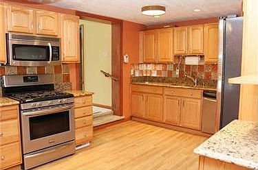 You will fall over heals for this amazing kitchen and family room. Granite in the kitchen, new cabinetry with pull outs, laminate flooring, back splash, recessed lighting, all appliances included. The family is HUGE! Enjoy the gas fireplace, soaring cathedral ceilings. A deck off the family room has a retractable awning. The first floor laundry room sits off the family room. This is a corner lot, the driveway easily accommodates five or more cars. Covered front porch, finished lower level and more!