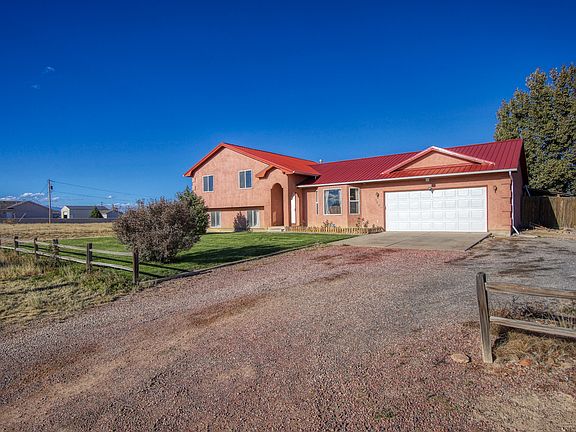 This charming trilevel in Pueblo West sits on a full acre of land. The main level has a large living area with dining and kitchen. The upper level consists of a large master suite with his and her closets, along with 2 other bedrooms and bathroom. The lower level has a large family room with gas fireplace and junior suite with attached bathroom and laundry. A bonus feature is the laundry shoot from the master bedroom upstairs. There is a 40x30 metal insulated detached garage with bathroom and its own hot water, along with room to park an RV. The metal insulated building also has a woodburning stove for those chilly nights. There is another smaller building storage shed. Newer Septic replaced roughly 3 years ago along with a new hot water heater for the home less than a year old.