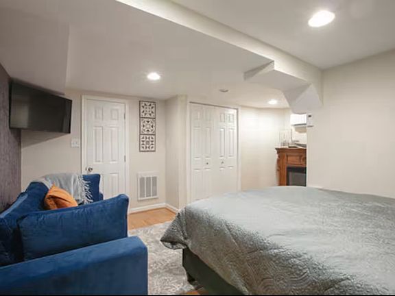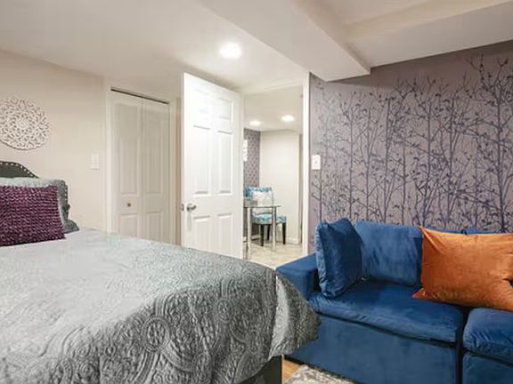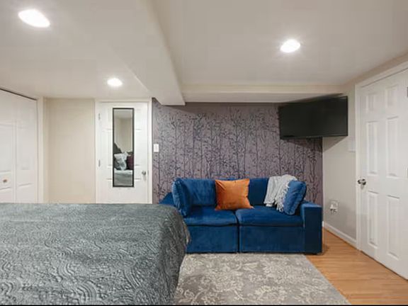RENT INCLUDES ELECTRIC, WATER, WIFI AND CABLE TV Unique studio that has a door to separate the kitchen and dining room so it's not one open combination living space. -Rear entrance, basement entry into a small room that's ideal for bike/coat rack storage and reading -full kitchen with breakfast bar and kitchen dining area -bedroom and sofa room with walk in closet, bathroom with stand up shower and full size washer and dryer Utilities Included: -electric, water, cable, WiFi Full Size Washer and Dryer Walk in Closet Bonus Room: Mudroom/Front Entrance Area Furnished or Unfurnished Available Move In Availability: Available Now 2 persons max on lease
