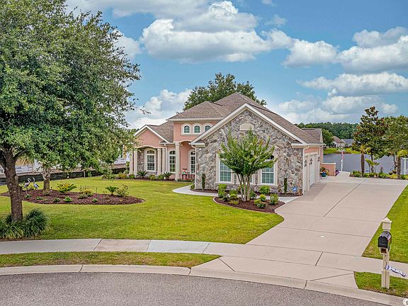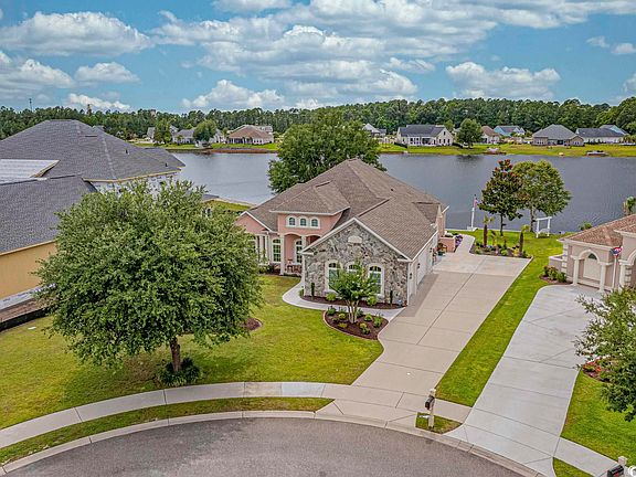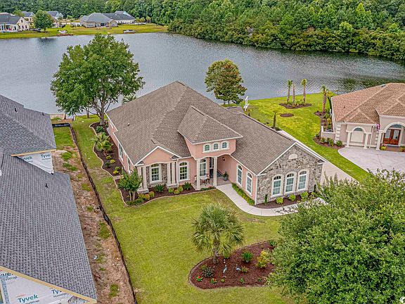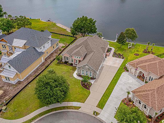 YOU HAVE FOUND YOUR NEW PARADISE.  This absolutely stunning custom lake front home is for sale in the very desirable Wild Wing Plantation community and sits on a half-acre lot.  It has an endless list of upgrades including high ceilings, crown molding, wood flooring, natural gas, 3-car side loading garage, its own boat docking area, gas fireplace and gorgeous landscaping with uplighting to showcase this incredible home. Every detail is impressive including the arch ways in the foyer and beveled corners throughout the home. This luxury home has a vast amount of space with 4 bedrooms, plus an office, 3 1/2 baths along with a separate laundry room. The office could easily be used for a 5th bedroom. The gourmet kitchen has a breakfast nook, granite countertops, walk-in pantry, stainless steel high-end appliances and a formal dining room. The main bedroom has a wonderful view of the lake, high volume tray ceiling with recessed lighting, a bay window, His and Her walk-in closets, an ensuite bathroom with motion sensor automatic lights, Jacuzzi tub, double sinks, linen closet and a tiled shower. AND THE PORCH - you will feel like you have been transported to a 5-star resort when you are sitting on the screened in porch watching the sunset over the lake. The spacious 3 car garage also includes a workshop station.   The Wild Wing community is surrounded by the 27-hole golf course with first class amenities including four resort-style pools, lighted tennis courts, fitness area, recreation facilities, 180 acres of freshwater lakes, private day docks with boat ramp and parking, onsite boat and RV storage and is in a great location with quick access to outstanding schools, the beach, shopping and restaurants.