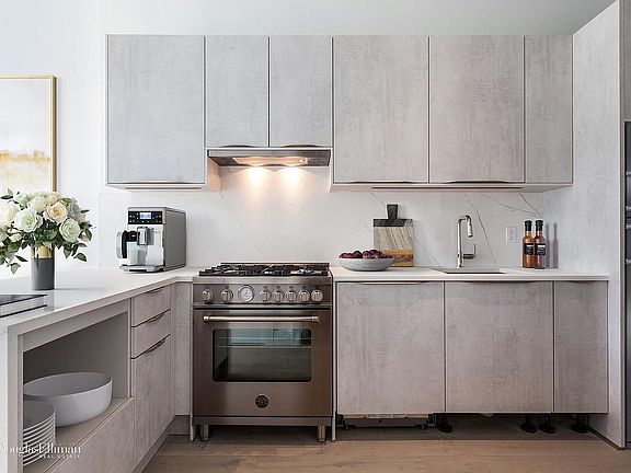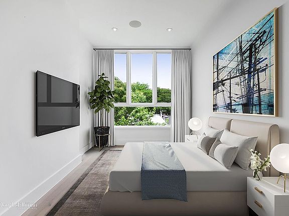 Just listed the best new construction 1-bedroom in Bushwick! Unit 4B at 1129 Halsey Street is a gorgeous 1BR condo providing the highest level of finishes. This 1-bedroom home features high ceilings along with floor-to-ceiling windows for extraordinary light. The luxurious open concept chef's kitchen includes a Bertazzoni stove and spacious calacatta marble countertops with breakfast bar seating. The living space seamlessly flows from the open kitchen and also includes a beautiful private balcony with partial city views in the distance. Beautiful 7-inch wide oak hardwood floors grace the home with elegance throughout and other desirable features include central air conditioning, radiant heated bathroom flooring, in-home surround sound system, large closets, and washer/dryer hook-ups. 1129 Halsey Street is a rare, boutique collection of 6 extraordinary new development condominiums located in the heart of Bushwick and featuring a beautiful brick faade. These chic residences include a range of methodically curated designer finishes. With low monthly charges and only 20 minutes from Manhattan, along with close proximity to the J/L trains and Halsey Park only a block away, these homes offer convenience and luxury in addition to incredible value. The building also provides a video intercom system and gorgeous roof terrace.