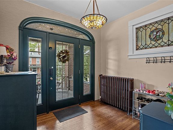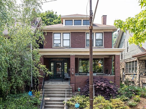 Large brick beauty in superb location! Very walkable, close to schools, shopping, dining and all that Pittsburgh has to offer. Residing on a charming row of homes solid, stately and stocked full of Craftsman architecture, the appeal of this 1920's family home speaks for itself. Stained glass windows and lighting, two delightful decorative fireplaces, custom trim and shelving, original wood floors and superb open doorways, to name some of the greats... Enjoy the two covered and charming patios, large and inviting entryway, spacious main level filled with cozy nooks and special details. Convenient and cute main level powder room as well! Upstairs offers three large bedrooms, and absolute delightful tile work in the full bath. Basement has great dry storage space, along with half bath that needs very little to finish into full.