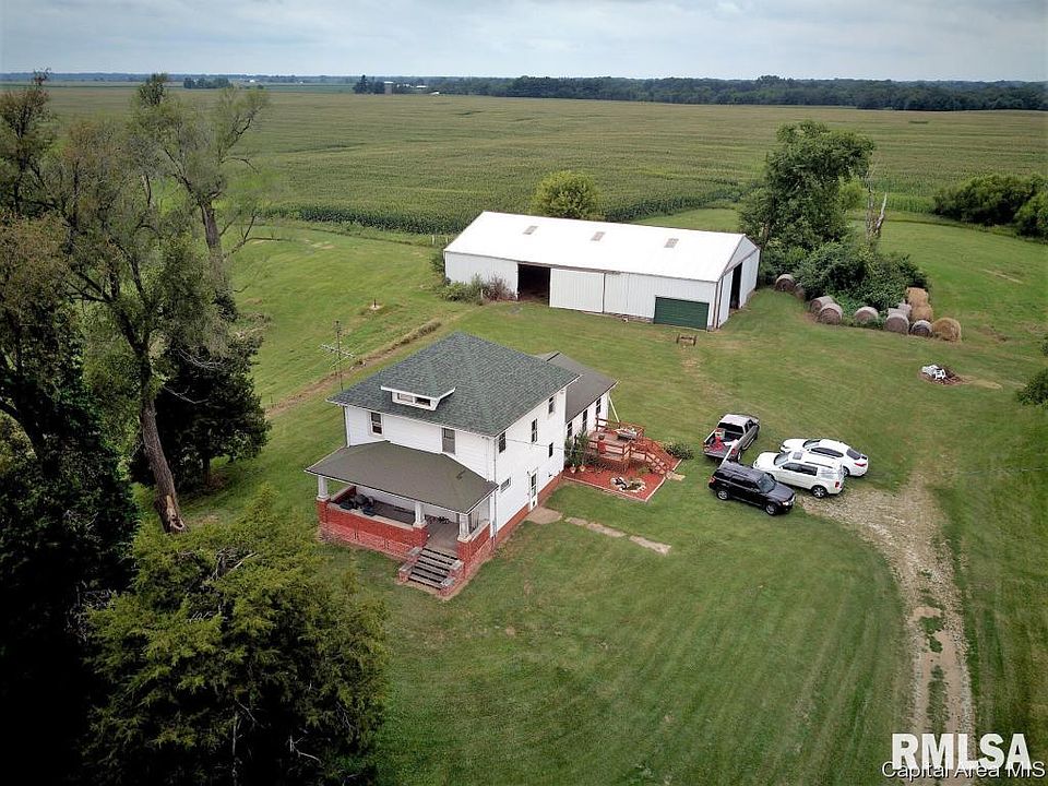 LOCATION & LAND what a combo!! Own a slice of country with this comfortable 4BR/2BA home on 8.43 Acres. This charming Farm house features include Main floor Master w/master bath, main floor laundry, large living room, breakfast bar, many newer windows, roof on house 2017, new holding tank & pressure valves, 560 ft drilled well, walk-up attic and 90 x 54 metal building with 2 horse stalls. Home being sold As-Is. TMI Home Warranty.