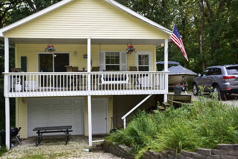 Charming Cottage tucked into the woods with short walk to the main beach. Garage has been converted into a nice family room and bar. Lower level office could become a BR with an egress window. Very nice front deck with over head roof, 7x10'6" workshop in lower level. Back of lot is an out lot. Subject to seller finding home of choice.